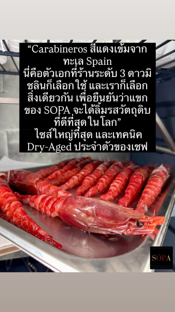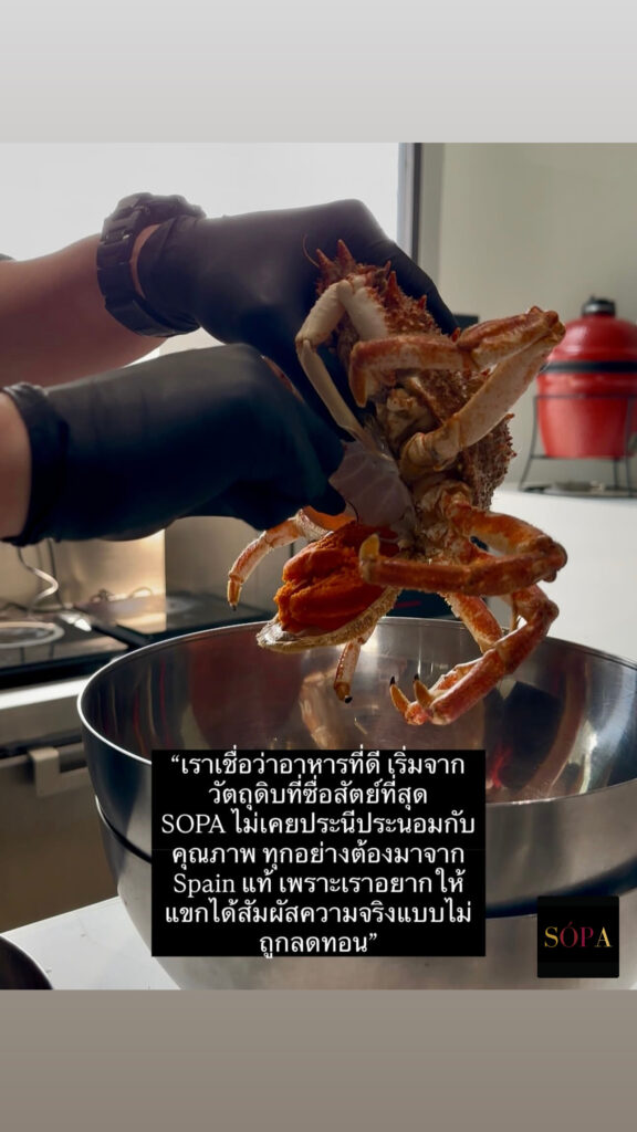 วัตถุดิบ 90–100% จากสเปน | SOPA ใช้วัตถุดิบนำเข้าโดยตรงจากสเปน ทั้งเนื้อ หมู ไก่ ทะเล เครื่องปรุง เพื่อรักษาความแท้ของรสชาติและเนื้อสัมผัสแบบ Spanish Fine Dining |