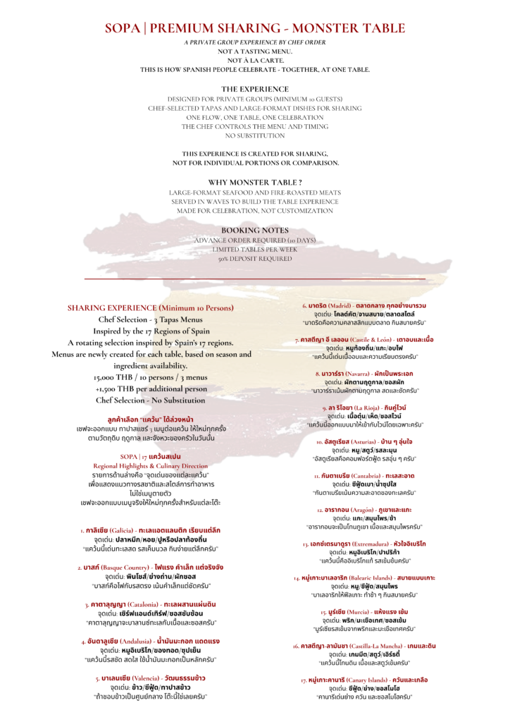 Spanish Fine Dining Bangkok — SOPA Monster Table Experience