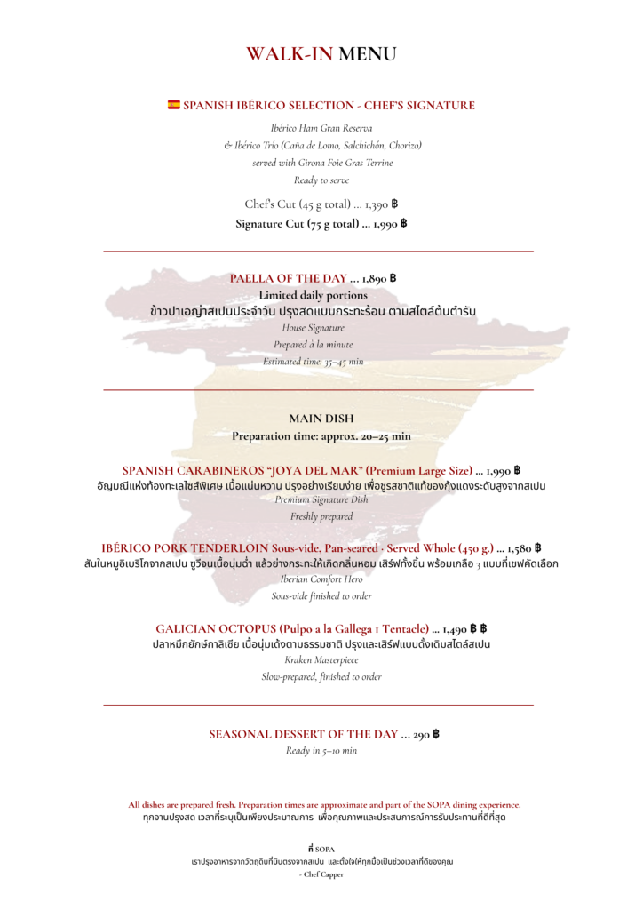ตามวัตถุดิบและที่นั่งที่มีในวันนั้น
